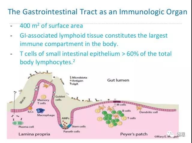 豬腸道的總面積有400m2,相當(dāng)于一個(gè)籃球場(chǎng)的面積,超乎想象吧!腸道是動(dòng)物最大的免疫器官和防御系統(tǒng)。腸道內(nèi)的淋巴組織構(gòu)成了機(jī)體最大的免疫隔室,小腸上皮細(xì)胞內(nèi)的T細(xì)胞可占到全身淋巴細(xì)胞總量的60%多。