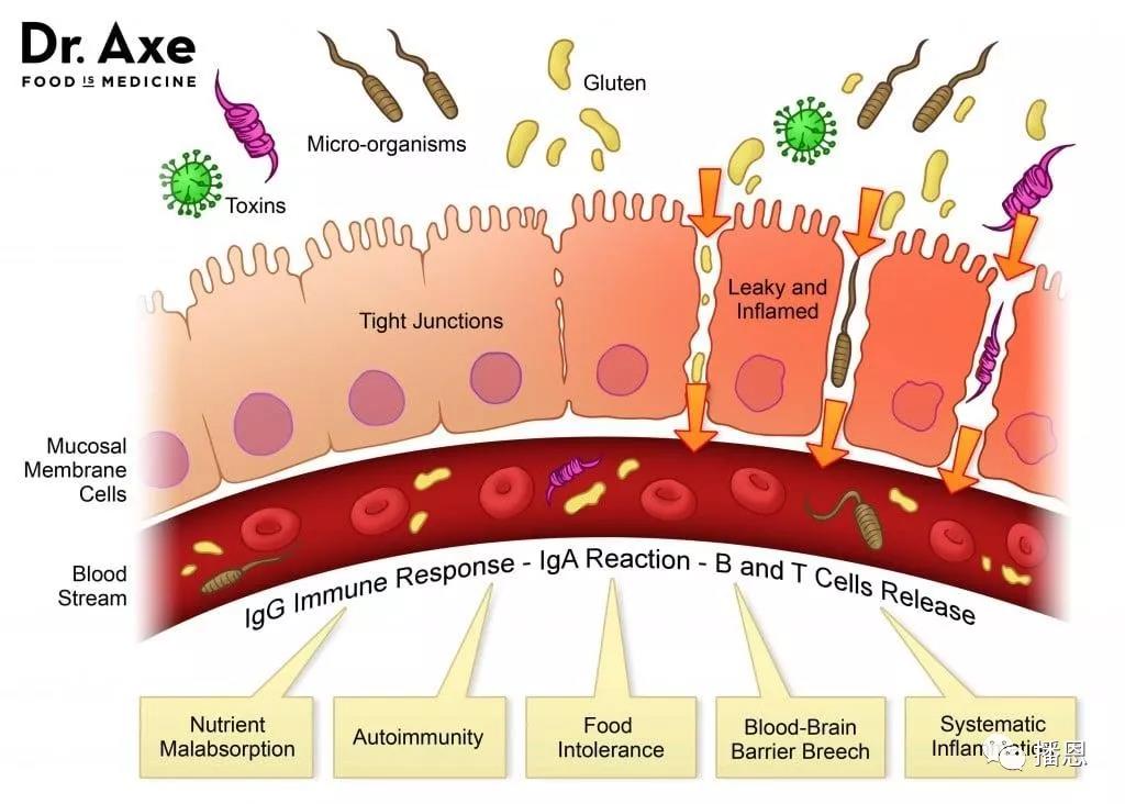 或許有人會(huì)感嘆,“哇,腸道實(shí)在是太強(qiáng)大了!”,但事實(shí)卻恰恰相反。如圖2,致病微生物(細(xì)菌或病毒)、毒素和抗原會(huì)隨飲水或飼料進(jìn)入動(dòng)物腸道,在這三者的共同作用下腸道上皮細(xì)胞被損害,如腸道上皮細(xì)胞間的緊密連接受損而出現(xiàn)空隙,致病微生物、毒素和抗原就會(huì)通過空隙侵襲到血液當(dāng)中,從而引起動(dòng)物發(fā)病。