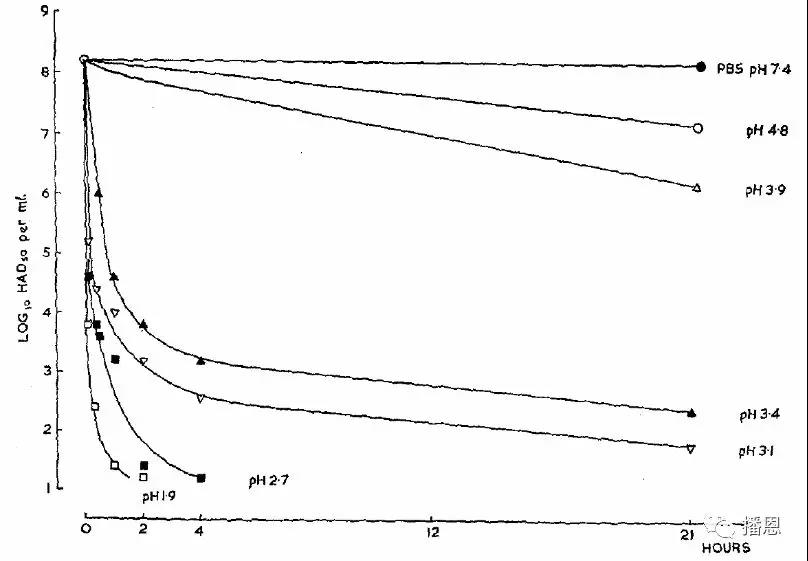 早在1967年,Plowright和Parker就進(jìn)行了pH對(duì)非洲豬瘟病毒活力影響的研究。從圖5可以看出,當(dāng)pH下降到4.0以下時(shí),非洲豬瘟病毒的活力開始大幅下降。因此得到的啟示是:可以通過降低“二師兄”的飲水pH4.0以下,來降低“二師兄”被非洲豬瘟病毒感染的機(jī)率。