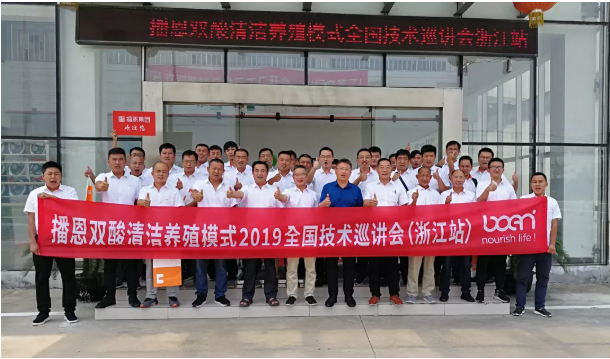 2019年8月19日—20日,播恩雙酸清潔養(yǎng)殖模式2019全國技術(shù)巡講會(浙江站)在湖州市順利召開。此次會議由東部戰(zhàn)區(qū)、北部戰(zhàn)區(qū)聯(lián)合舉辦,共計邀請安徽、江蘇、浙江、山東等地的50余位客戶,播恩集團副總裁曹劍波、播恩集團顧問章紅兵教授、東部戰(zhàn)區(qū)總監(jiān)簡毅科、北部戰(zhàn)區(qū)總監(jiān)白林杰等相關(guān)領(lǐng)導(dǎo)出席會議。