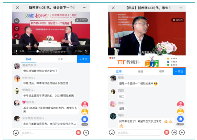 此次直播,獲得愛豬網(wǎng)、中國養(yǎng)豬網(wǎng)、豬易傳媒、牧業(yè)前沿、賽爾傳媒、播恩live六大媒體進行同步轉播,更吸引了36萬+人次的駐足觀看。直播間網(wǎng)友紛紛表示此次直播收獲很多,也在2021年的預測與展望中摸索到了自己的致富經(jīng)。