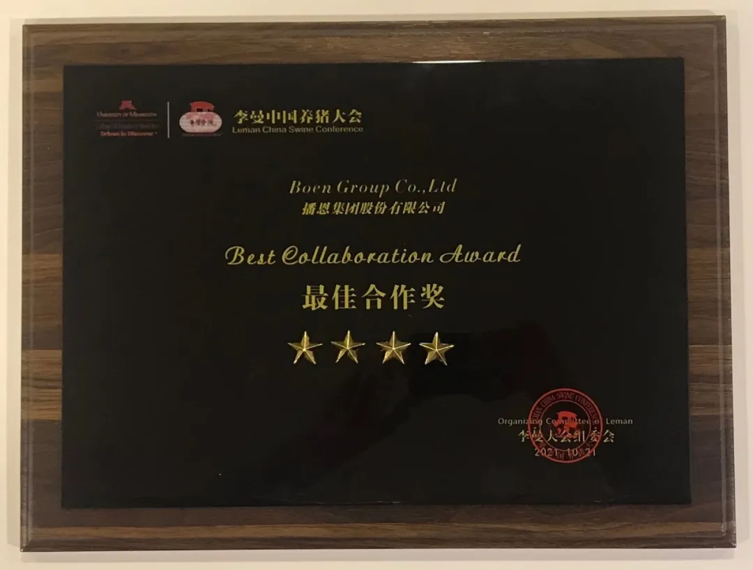 2021年10月20-22日,第十屆李曼中國養(yǎng)豬大會暨世界豬業(yè)博覽會在重慶國際博覽中心舉行。大會期間,播恩集團領取了李曼大會組委會頒發(fā)的“最佳合作獎”。