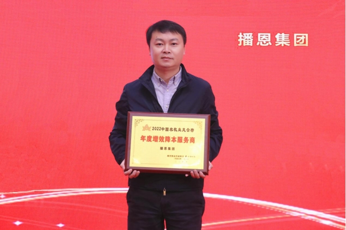 2023年2月21日,由南方報業(yè)傳媒集團、南方農(nóng)村報社主辦,農(nóng)財寶典、新牧網(wǎng)承辦的2022第十二屆中國農(nóng)牧業(yè)風云會在廣州盛大舉行。經(jīng)過前期激烈的網(wǎng)絡投票,以及專家、金牌服務商、協(xié)會、種豬場評委綜合評選,播恩集團榮獲“2022年度增效降本服務商”稱號,播恩集團華南戰(zhàn)區(qū)總監(jiān)曾總代表公司上臺領取榮譽。