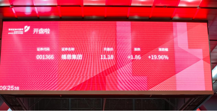 播恩集團(tuán)開盤價11.18元/股,開盤市值近18億元