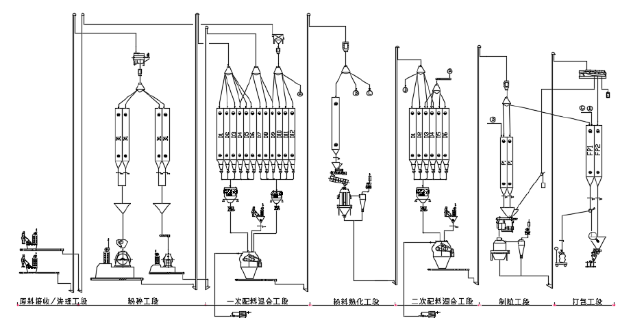 生物發(fā)酵飼料具有適口性高易于消化的特點,現(xiàn)階段被廣泛應(yīng)用于生豬的養(yǎng)殖。因其富含益生菌、活性肽、復(fù)合酶等熱敏性生物活性物質(zhì),所以加工過程中對加工溫度有著嚴(yán)格的要求。精細(xì)化生物發(fā)酵料的加工工藝不但能最大限度的保持飼料中生物活性物質(zhì)的效價,還能提高豬只對飼料原料的利用率和生產(chǎn)性能,從而提升養(yǎng)殖效益。除了傳統(tǒng)的包被和噴涂工藝外,還有高效調(diào)制低溫冷制粒工藝,通過加工工藝的細(xì)化能最大程度減少熱敏性原料的營養(yǎng)損失,以及生物活性物質(zhì)的失活。圖3是低溫制粒飼料流程圖(引自段海濤)。