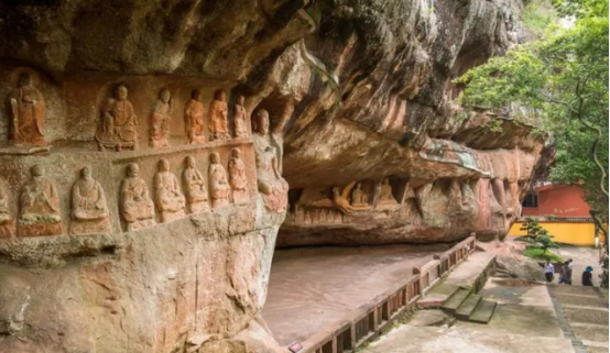 通天巖,位于江西省贛州市章貢區(qū)西北郊6.8千米處,開鑿于唐朝,興盛于北宋,至今保留著唐朝至宋代的石龕造像359尊,宋代至民國的摩崖題刻128品,被譽(yù)為“江南第一石窟”。通天巖風(fēng)景區(qū)由摩沙巖石山組成,是一處典型的丹霞地貌風(fēng)景區(qū),多天然巖洞,其一巖洞頂有一竅,相傳上可通天,故名。