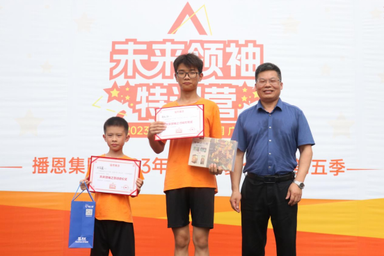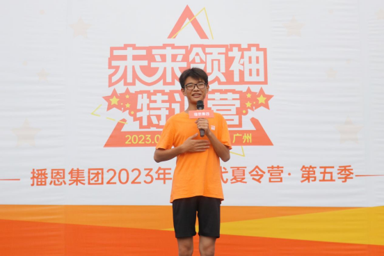 在學(xué)員發(fā)言環(huán)節(jié),本次訓(xùn)練營(yíng)的優(yōu)秀學(xué)員代表李凱旭同學(xué)上臺(tái)發(fā)表感言。跟隨家長(zhǎng)的足跡,李凱旭很高興能親自走進(jìn)播恩,切身感受播恩文化與工作環(huán)境。他期待著,在播二代夏令營(yíng)“理想行動(dòng)、擔(dān)當(dāng)大同”口號(hào)的鞭策下,努力成為更好的自己,探索未至之境,暢游科學(xué)海洋,立志領(lǐng)袖夢(mèng)想。李凱旭分享了夏令營(yíng)期間的點(diǎn)滴收獲,希望可以通過(guò)自己的努力考上更好的大學(xué),成為真正的播恩人。
