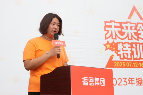 家長(zhǎng)代表任飛女士對(duì)集團(tuán)本次舉辦的夏令營(yíng)表示了最真誠(chéng)的謝意,感謝公司為孩子們搭建的學(xué)習(xí)與交流的平臺(tái)。播二代夏令營(yíng)給孩子們創(chuàng)造了一個(gè)專業(yè)學(xué)習(xí)、開(kāi)闊視野和能力培養(yǎng)的機(jī)會(huì),發(fā)現(xiàn)了孩子們無(wú)限的潛力和創(chuàng)造力,也點(diǎn)燃了孩子們學(xué)習(xí)與交友的熱情。她祝愿播二代夏令營(yíng)越辦越好,也祝愿播恩發(fā)展長(zhǎng)虹。