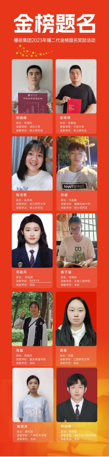 致辭結(jié)束后,就來到了最激動(dòng)人心的金榜題名頒獎(jiǎng)環(huán)節(jié)。本次活動(dòng),播恩集團(tuán)為今年考取大學(xué)的10位播二代頒發(fā)了「播二代金榜題名獎(jiǎng)學(xué)金」。