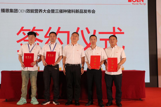 緊接著佛山工廠區(qū)曾慶昌總監(jiān)的主持下,曹總與宣威永和總經(jīng)理李家嚴(yán)、華昕集團董事長徐桂林、福安市博成飼料經(jīng)營部總經(jīng)理薛光平、新羅區(qū)鑫農(nóng)飼料經(jīng)營部總經(jīng)理俞石金舉行了簽約儀式。場內(nèi)一片歡騰,積極下單的客戶絡(luò)繹不絕,顯示出對新產(chǎn)品的高度認(rèn)可和期待。