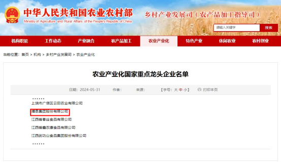 “農(nóng)業(yè)產(chǎn)業(yè)化國家重點龍頭企業(yè)”是我國農(nóng)業(yè)企業(yè)中含金量極高的榮譽之一,由農(nóng)業(yè)農(nóng)村部、國家發(fā)展和改革委員會、財政部、商務(wù)部、中國人民銀行、國家稅務(wù)總局、中國證券監(jiān)督管理委員會、中華全國供銷合作總社等8個國家部門共同認(rèn)定。其認(rèn)定過程十分嚴(yán)格,涵蓋企業(yè)申報、各地推薦、專家評審、部門審核、媒體公示等多個環(huán)節(jié),只有最終達標(biāo)的企業(yè)才可獲此殊榮。