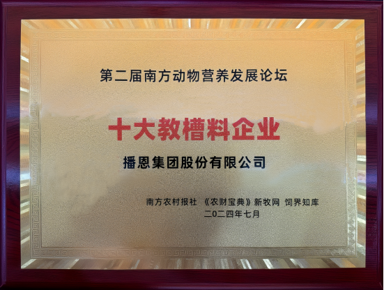 2024年7月14-16日,以“南方問(wèn)道,融合知新”為主題的2024第二屆南方動(dòng)物營(yíng)養(yǎng)發(fā)展論壇在廣西南寧隆重召開(kāi)。該論壇作為南方地區(qū)規(guī)模大、規(guī)格高、陣容強(qiáng)的動(dòng)物營(yíng)養(yǎng)領(lǐng)域盛會(huì),吸引了近700位畜牧水產(chǎn)業(yè)的大咖齊聚。播恩集團(tuán)由欽州播恩總經(jīng)理?xiàng)畲簬ш?duì)參與,并憑借在動(dòng)物營(yíng)養(yǎng)領(lǐng)域的卓越表現(xiàn)和優(yōu)質(zhì)的教槽料產(chǎn)品,在此次論壇上獲得了“十大教槽料企業(yè)”榮譽(yù)。