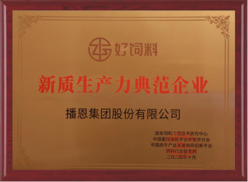 此次獲評“新質(zhì)生產(chǎn)力典范企業(yè)”稱號,不僅是對播恩過去努力的肯定,更是對其未來發(fā)展的鼓舞。播恩集團將繼續(xù)秉持“為客戶創(chuàng)造價值”的理念,通過持續(xù)創(chuàng)新和深耕細(xì)作,推動新質(zhì)生產(chǎn)力的發(fā)展,為中國飼料行業(yè)的高質(zhì)量發(fā)展做出更大貢獻(xiàn)。
