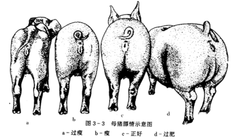 七、斷奶當(dāng)天:評估哺乳期母豬掉膘程度,掉膘越少,發(fā)情越早,排卵數(shù)越多。