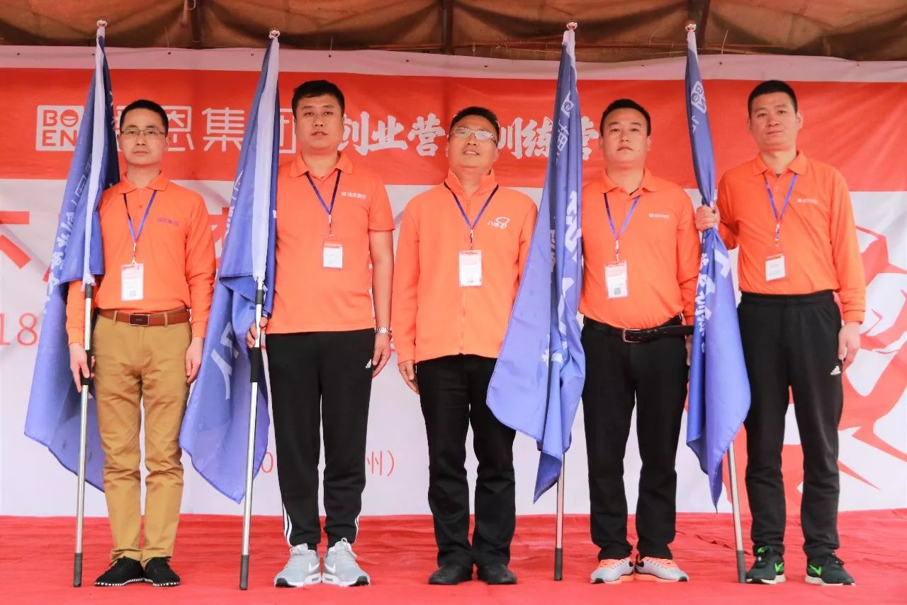 創(chuàng)業(yè)營(yíng)開營(yíng)現(xiàn)場(chǎng),營(yíng)銷總監(jiān)曹劍波(圖中央)為中隊(duì)長(zhǎng)授中隊(duì)旗